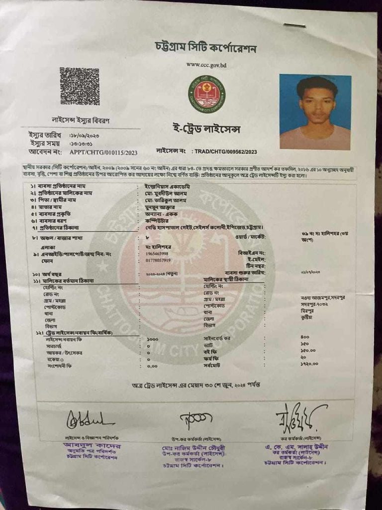 প্রতারক মুবদীউল আলম এর ডিজিটাল মার্কেটিং এজেন্সির ই-ট্রেড লাইসেন্সঃ